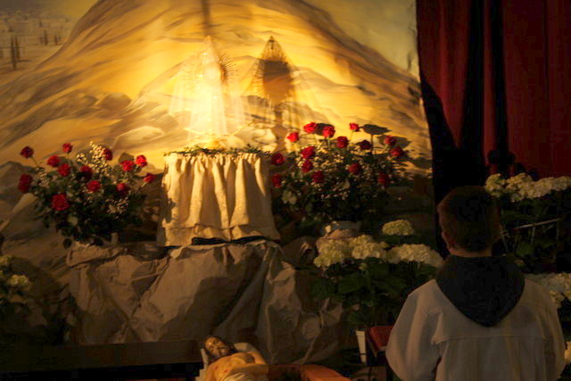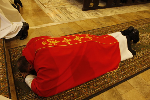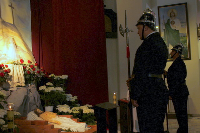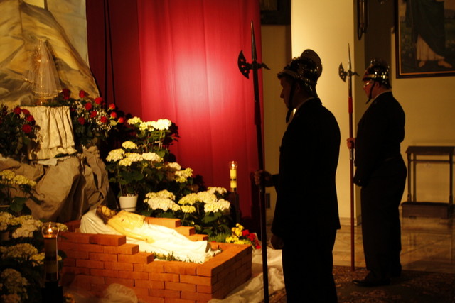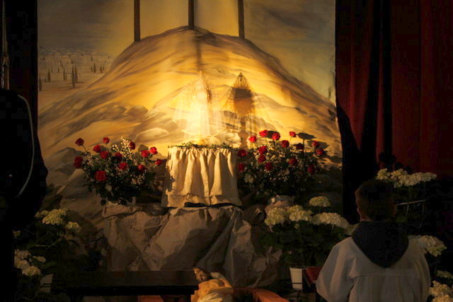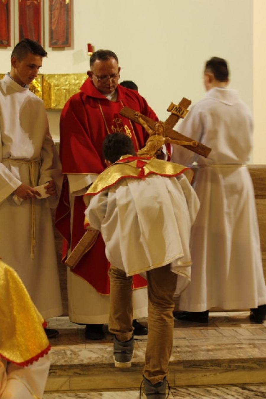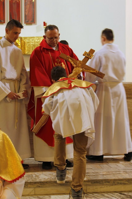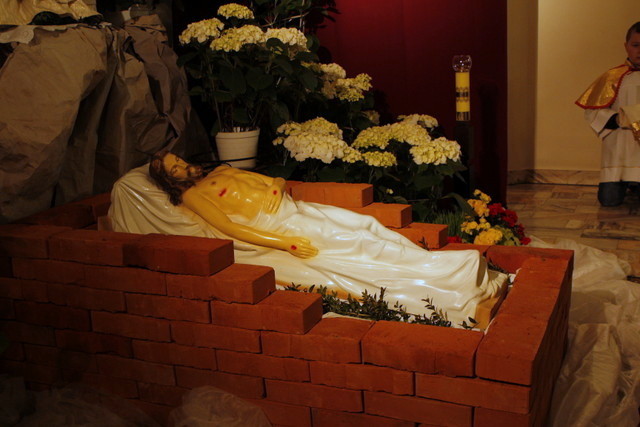 Wielki Piątek - Liturgia Męki Pańskiej. Treścią Liturgii Wielkiego Piątku, jest zbawcza Męka i Śmierć Chrystusa na Krzyżu, przez które dokonało się nasze zbawienie. Jest to jedyny dzień w roku, kiedy Zgromadzenie Liturgiczne Kościoła nie sprawuje Ofiary Eucharystycznej- Mszy Świętej. Liturgia Wielkiego Piątku składa się z czterech części: Liturgii Słowa, Adoracji Krzyża, Komunii Świętej i procesji do Bożego Grobu.